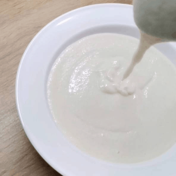 Wymieszaj 1/4 mleka w szklance z kaszą, a pozostałe mleko podgrzewamy w garnku na średnim ogniu. Gdy mleko się zagotuje wsypujemy mieszankę kaszy i mleka. Mieszamy rózgą do otrzymania konsystencji jak na poniższym obrazku.
