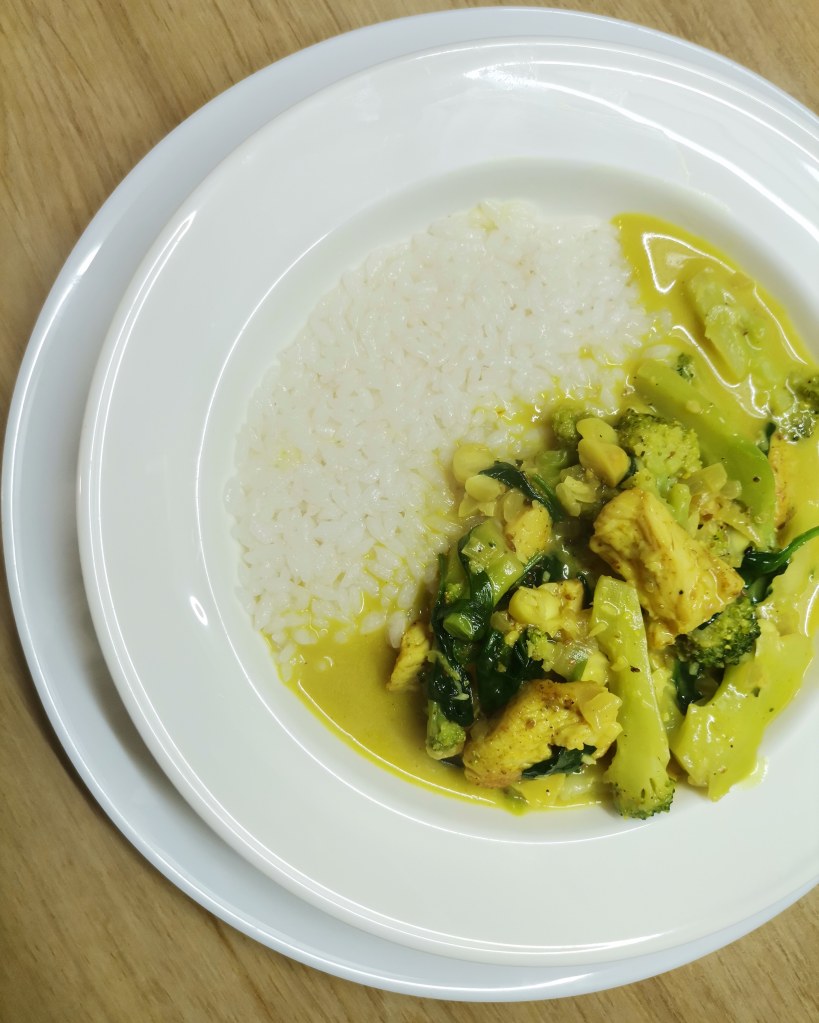 Obiad w indyjskim stylu. Polecam wykorzystać mieszankę curry z poprzedniego przepisu. Możecie wymieć warzywa na inne np brokuł na kalafior lub szpinak na jarmuż będzie równie znakomite.