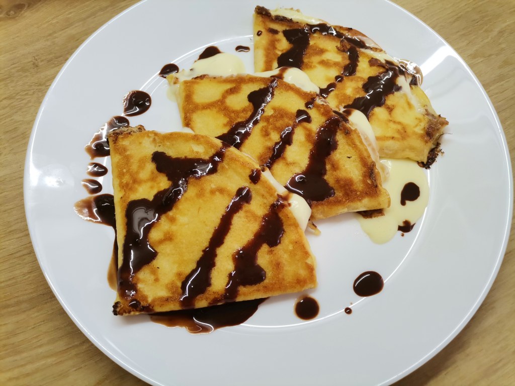 Każdy zna ten zapach. Zapach smażonych naleśników, który roznosi się po domu. Od nich nikt się nie odmówi! Dzisiaj podane z budyniem i czekoladą.