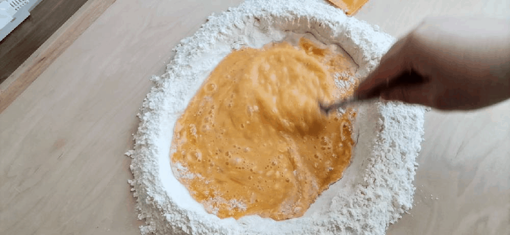 Zasada przy „pasta fresca all’uovo” jest taka, że na każde jajko przypada 100 g mąki. I jest to porcja na jedną osobe.