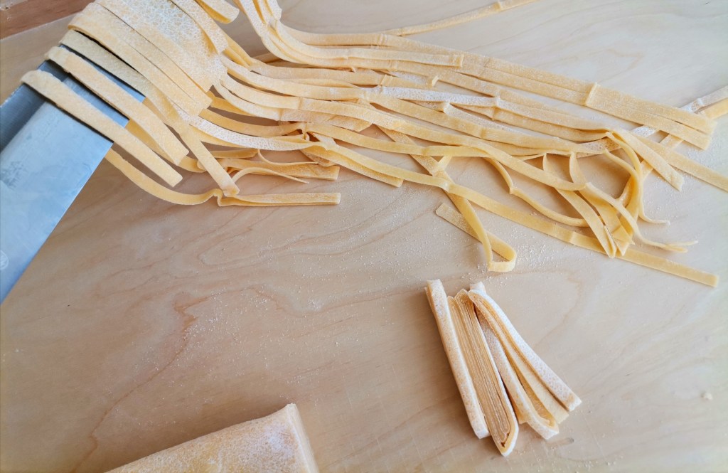 Dzisiaj będziemy robić tagliatelle. Długi makaron którego szerokość wariuje od 5-8 milimetrów.