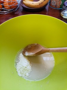 Odstaw przykryte aż ruszą drożdże. Jakieś 10 minut. Jeżeli używasz suchych drożdży pomiń ten proces.