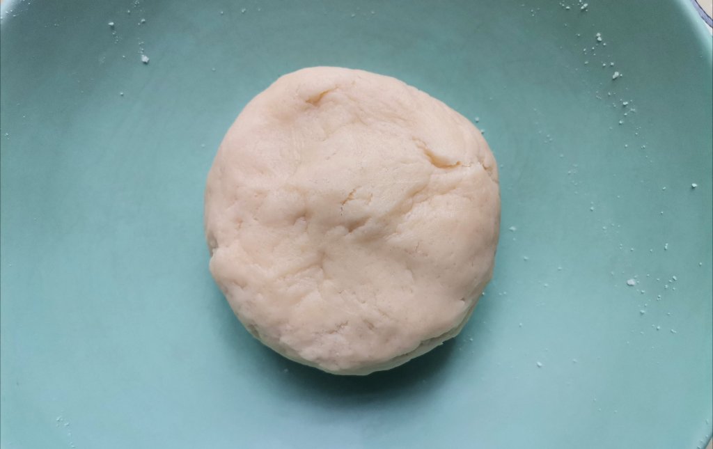 3. Połącz dokładnie w kule jak najszybciej możesz. Im dłużej wyrabiasz tym mniej chrupiące będzie ciasto. Odstaw ciasto zawinięte folią do lodówki na 30 minut.