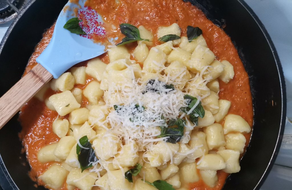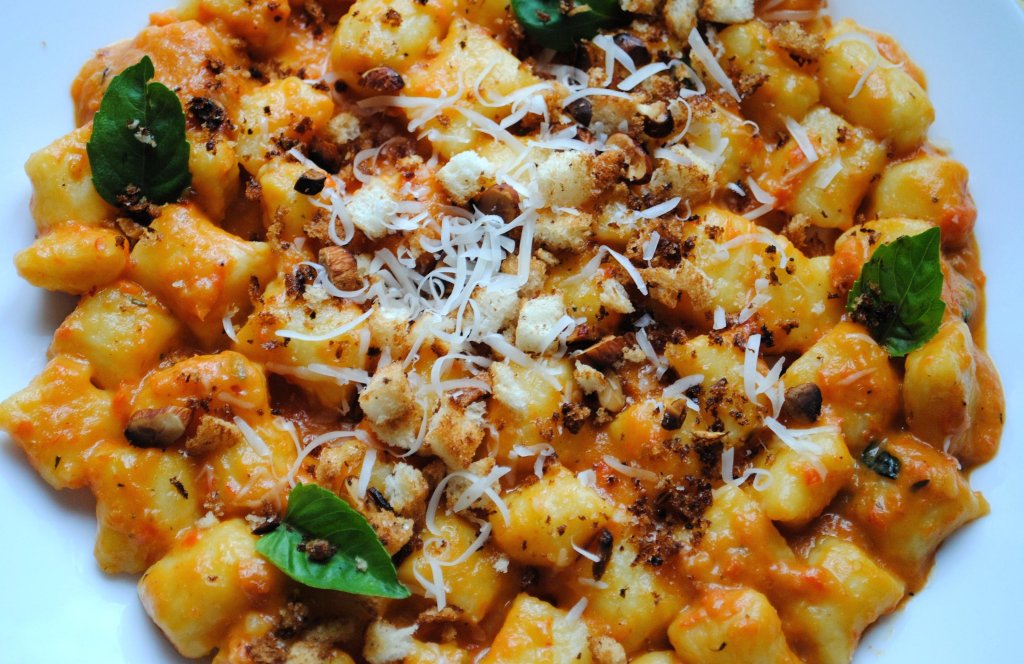 Gnocchi w sosie paprykowym okraszone okruchami. 👇