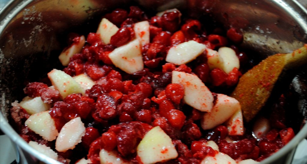 2. W dużym garnku umieść owoce dodaj cukier i sok z cytryny. Jeżeli chcesz śmiało zwiększ ilość cukru. Nam smakują takie porcję. Kiedy mamy ochotę na dżem do mięsa wzbogacamy dżem o ocet, musztardę i przyprawy.