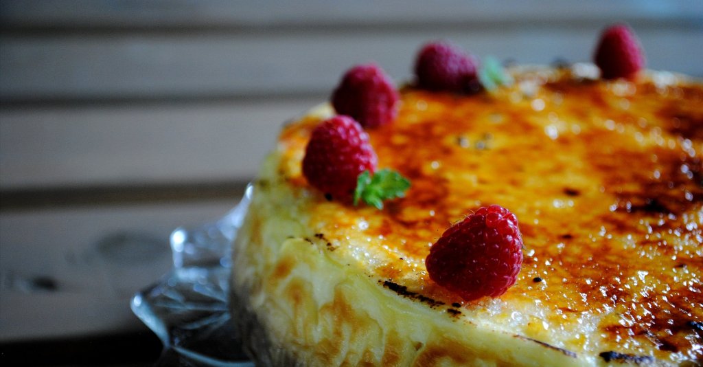 3. Budyń dodaj do serowej masy. Następnie wprowadzaj ubite białka. Gotową masę przelej na ciasteczkowy spód. Piecz przez około 45-60 minut. Zostaw w uchylonym piekarniku do wystudzenia. Posyp wierzch sernika równomierną warstwą cukru. Opał ją za pomocą palnika.