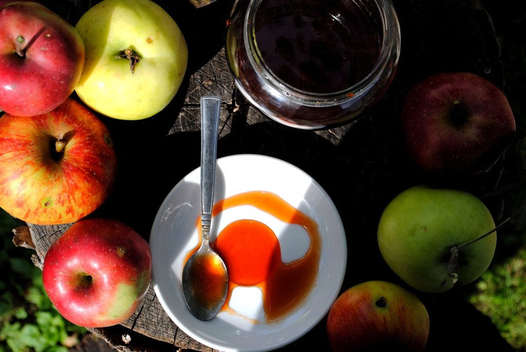 Dzisiaj pod nóż bierzemy produkt szeroko przez nas wykorzystywany. Ze względu na ilość jabłoni które ozdabiają nasz ogród produkty z jabłek u nas przeważają. Karmel jabłkowy głównie służy nam jako zamiennik cukru w wszelakich przetworach. Wystarczy mała ilość aby przetwory nabrały słodkości i oryginalnego smaku.