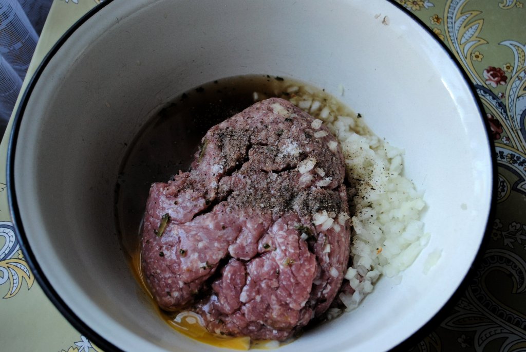 * 800 g świeżo mielonego mięsa wieprzowego (można wymieszać z wołowym, baraniną lub cielęcym mięsem)