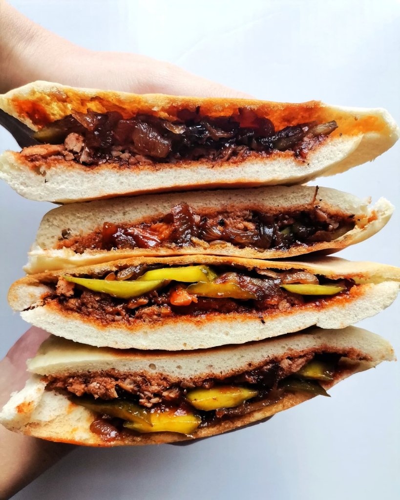 Pyszne chlebki w których tworzy się pusta kieszonka. Można ją napełnić czym duszą zapragnie. W lato górują świeże ogórki i warzywa z falafel, a jesienią szarpana wieprzowina z dodatkami.