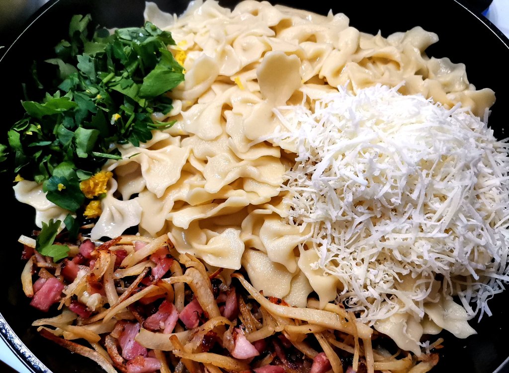 Wczoraj robiłam domowe farfalle na które przepis załączę poniżej. Jednak na szybko podejdzie każdy format makaronu. Słodki korzeń pietruszki, wyrazisty boczek i skórka cytryny. Idealne połączenie które zadowoli Wasze brzuchy. W wolny od bieganiny dzień wróćcie do przepisu na domowy makaron. ⏬⏬⏬