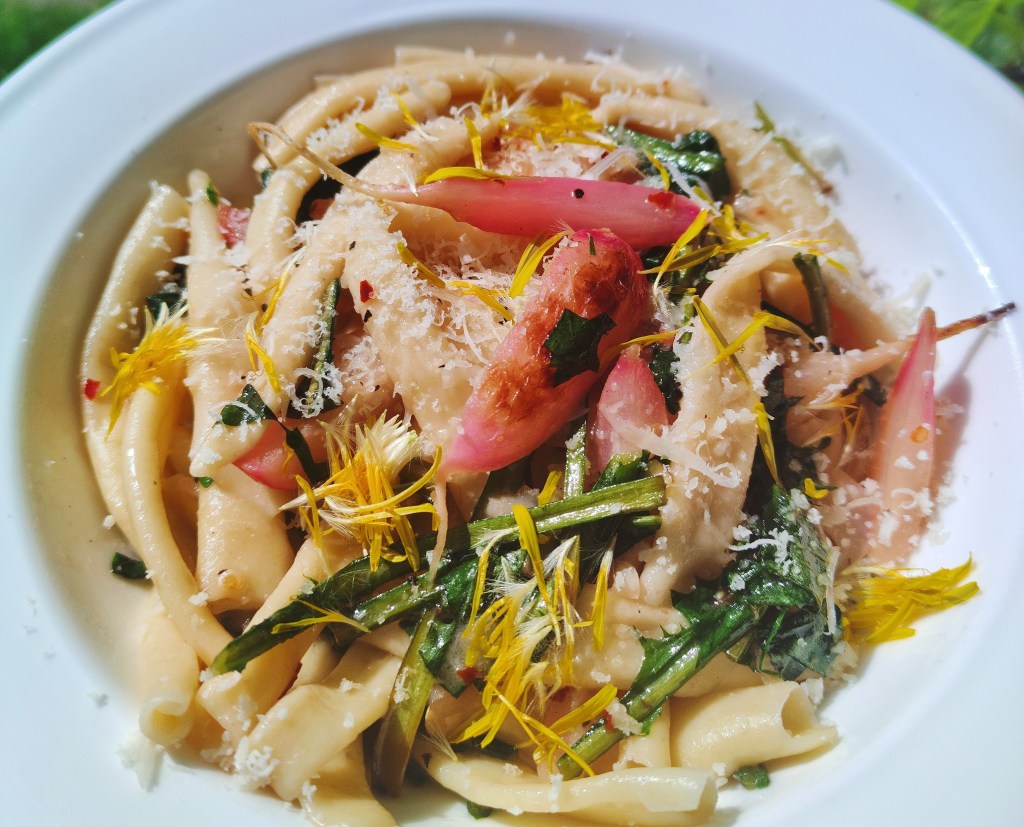Czy jest coś lepszego niż świeży makaron? Zwłaszcza ten własnoręcznie robiony. Dzisiaj padło na maccheroni. Konsystencja zawsze rozbija mnie na kawałki nieważne który raz go jem. I maccheroni jest jedynym z moich ulubionych. Zawsze tak mówię! Nigdy nie mogę się zdecydować jaki format kocham najbardziej. Poniżej propozycja podania.