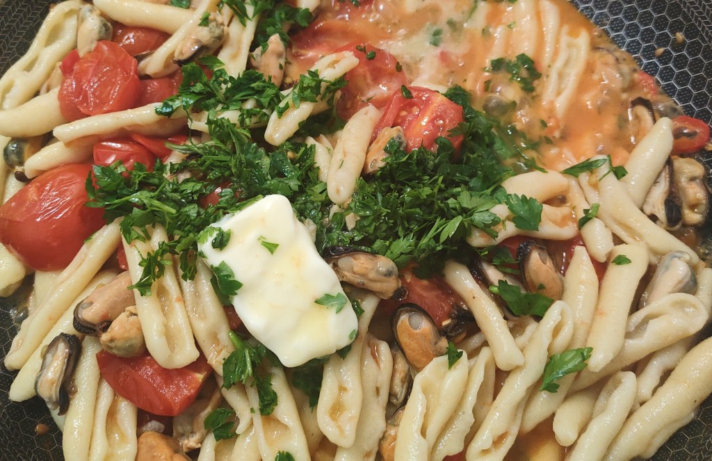 We Włoszech nie trudno o cozze. Nie wiedziałam w ogóle, że omułki to właśnie cozze. Ładna dosyć nazwa nie powiem, a już na pewno lepiej brzmi niż włoska. Dawno ich nie widziałam w lodówkach. Kiedy moje oczy napotkały mrożone musiałam wziąć chodź paczkę. Na makaron akurat wystarczyło. Chodź trochę zabrały nas ponownie do pięknej Italii.