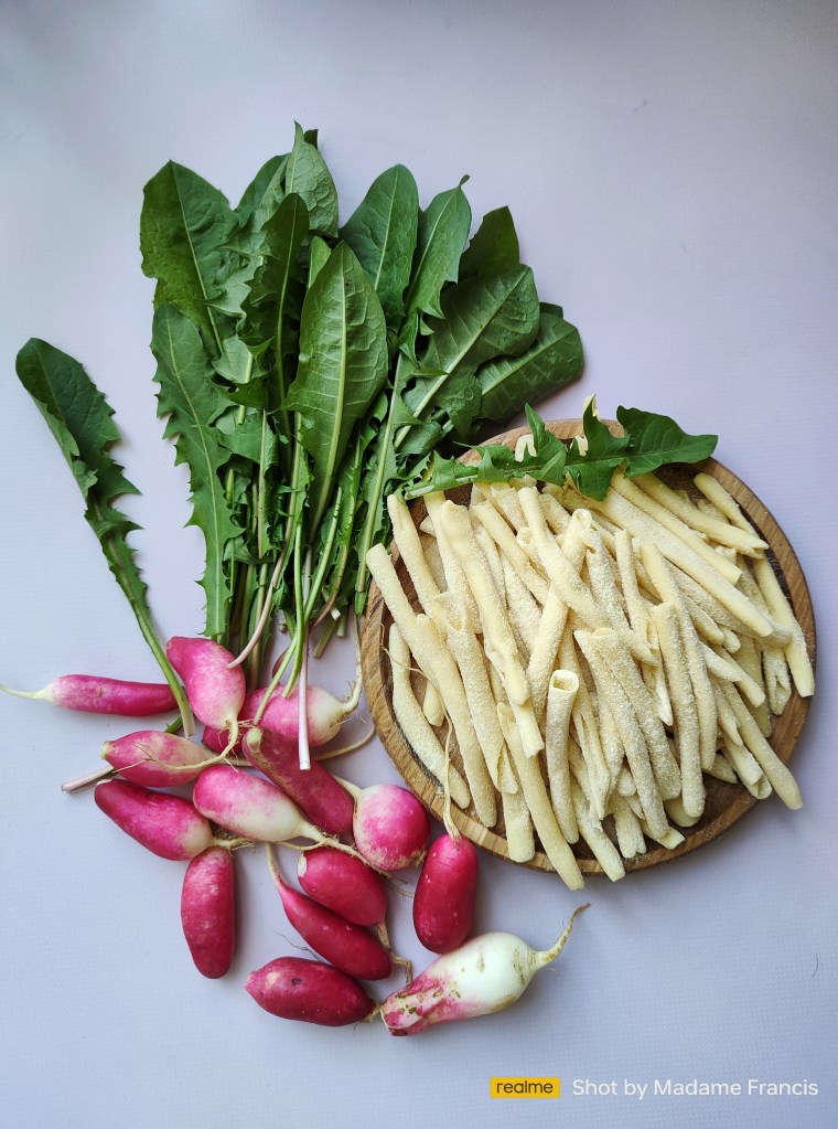 Świeży, gorzkawy smak liści mniszka połączony z chrupkim rzodkiewkami. Makaron maccheroni stworzył z tymi składnikami idealne połączenie. Bardzo wiosenne dane zwieńczone płatkami mniszka lekarskiego.