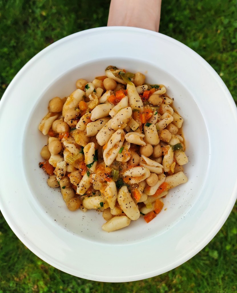 Niezwykle zachęcająca pozycja wegetariańska. Pyszna ciecierzyca, aromatyczne warzywa i domowy makaron. Proste danie które zadowoli każde podniebienie.