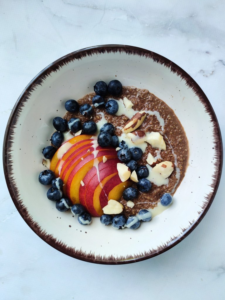 W tym wydaniu quinoa smakuje wyśmienicie, ale inne kaszę też będą świetne. Zawsze warto mieć ugotowane trochę kasz na zapas właśnie do takich ekspresowych śniadań. Możesz dodać także białka na koniec do kaszy, mi akurat zabrakło. Wtedy zwiększysz znacznie ilość białka w tym posiłku. Oczywiście dodatki według twojego gustu!