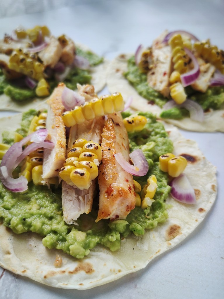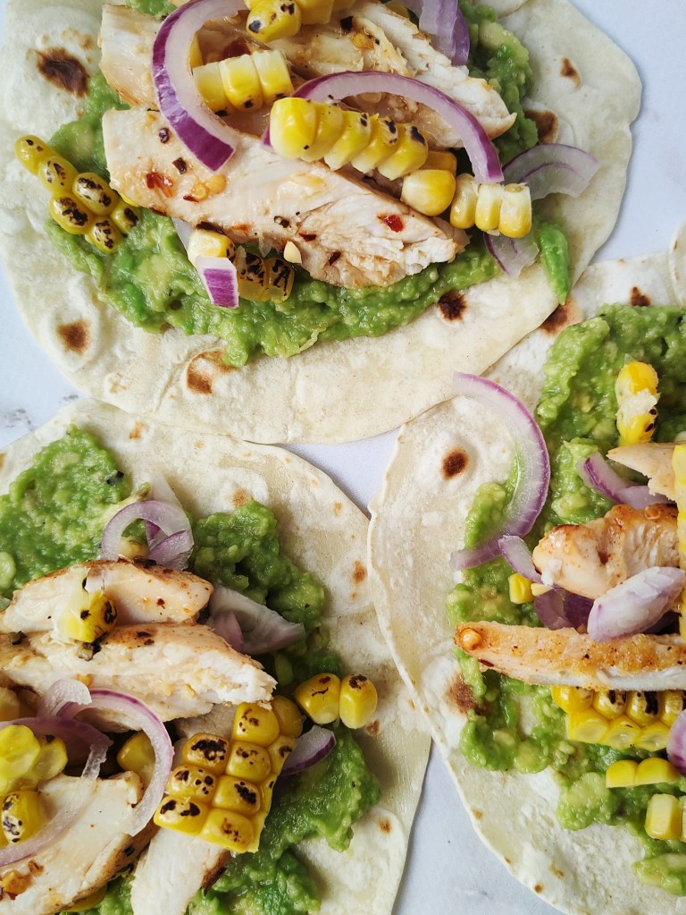 Soczysty kurczak otoczony słodko ostrą glazurą. Kremowe awokado w połączeniu ze słodką podpalaną kukurydzą. Cebula dodaję troszkę charakteru, a kurczak i tortilla dopełniają całości.