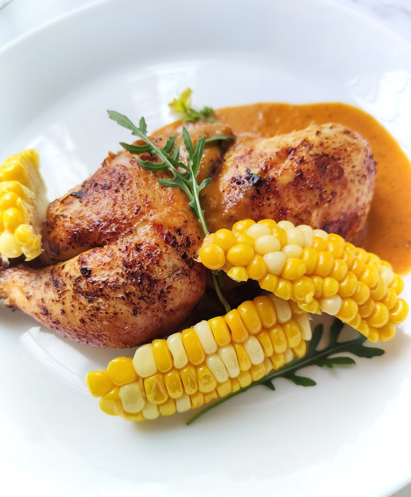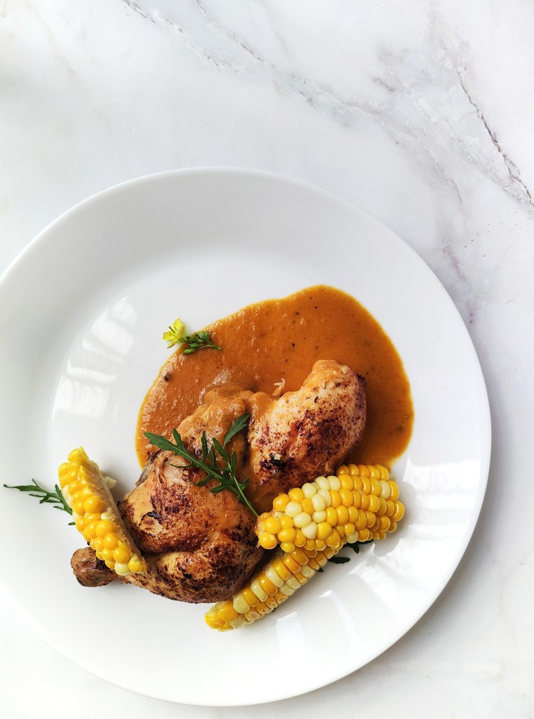 4. Kurczak ładuje ponownie w naczyniu. Wrzucam go na funkcję grill aby skórka się przy rumieniła. Wyciągam kurczaka z piernika i daję mu odpocząć jeszcze 10 minut. Dzięki temu soki od razu nie wypłyną. Podaję z sosem i wybranymi dodatkami. Na Instagramie znajdziesz wideo z przygotowaniem. Pycha!