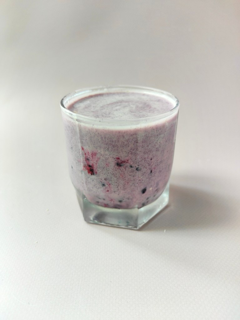 Pożywny proteinowy koktajl na bazie kefiru, jeżyn i białka. Masa energii w parę minut. Z blenduj wszystkie składniki i ciesz się sycącym koktajlem.