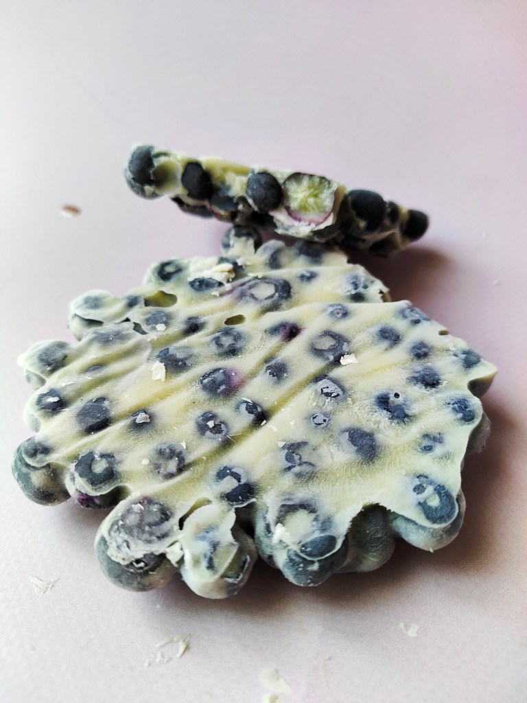 Mieszam dokładnie jogurt z białkiem. Dodaję borówki i dokładnie je pokrywam. Wykładam na papier do pieczenia. Robię trzy porcję, możesz zrobić mniejsze. Wkładam do zamrażarki.