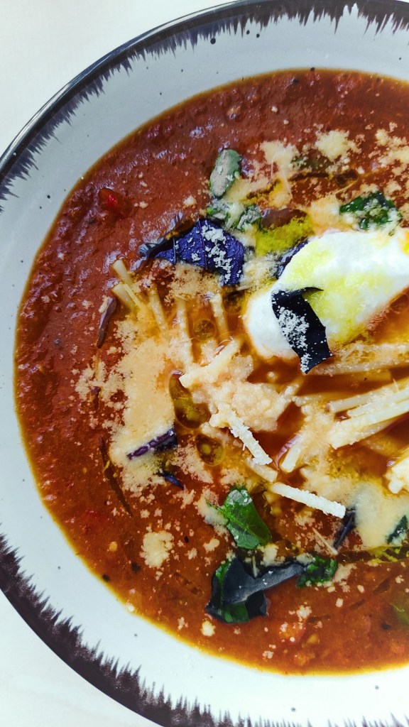 2. Gotuję makaron. Rozgrzewam bulion dodaję przetarte pomidory i mleko. Przyprawiam zupę do smaku. Podaję z makaronem, jogurtem, polaną oliwą oraz posypaną grana padano. Na Instagramie znajdziesz wideo z przygotowaniem. Pycha!
